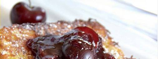 Servir les tartines saupoudrées de sucre glace et accompagnées d'1 cuillère à soupe de confiture de cerises noires légèrement tiédie.